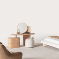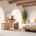 Тоалетка с огледало Lumo внася подреден, съвременен вид в спалнята. Широкият плот е удобен за ежедневна грижа и аксесоари, а огледалото добавя светлина и визуална ширина. Чистите линии и плавните ръбове се комбинират лесно с останалите мебели от серията и с различни интериорни стилове. Конструкцията е предвидена за ежедневна употреба и поддръжка без усилие.