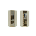 Ъгловият модул от модулната система Kapadokya е създаден, за да оптимизира пространството във всяка спалня, като същевременно осигури функционално и стилно решение. Благодарение на ъгловата си форма той съчетава лост за закачалки и рафтове, като осигурява място както за висящи дрехи, така и за сгънати. Осветлението с LED сензори улеснява достъпа и видимостта дори при слаба светлина. Модулът се предлага с врата от опушено стъкло или с плътна врата от лакобел в златиста рамка и може да бъде комбиниран с останалите елементи от серията за напълно завършена визия и удобство. Размери: широчина 97 см / дълбочина 97 см / височина 231 см.