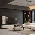 ТВ модул Molivo съчетава изчистен дизайн и практичност в два варианта – долен модул за техника и съхранение и горен модул за подредба и декор. Широкият нисък шкаф предлага стабилен плот за телевизор и скрити отделения за устройства и кабели, а горният модул добавя вертикален акцент и място за любимите ви предмети. Меките, заоблени форми и минималистичните детайли позволяват лесно комбиниране с останалите елементи от серията Molivo.