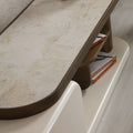 - Дизайн: съвременни линии с плавни ъгли; функционални отделения и открити рафтове.