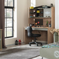 Дизайнът следва military темата на серията Camp с дървесен корпус, матово зелени акценти, въжена дръжка и декоративна емблема на вратата. Надстройката дава повече място за книги, кутии и декорация, а перфорираният гръб е удобен за бележки и дребни принадлежности. Camp е добър избор, ако търсите бюро за тийн стая с по-характерна визия и по-практично разпределение.