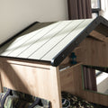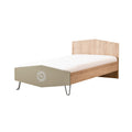Леглото Camp е решение за тийн стая, когато искате леглото да бъде не само място за сън, а и силен акцент в обзавеждането. Моделът е с отличима конструкция тип къщичка, която прави зоната около леглото по-интересна и по-завършена. Над таблата има открити рафтове за книги, дребни вещи и декорация, а страничните отвори и въжените детайли допълват military темата на серията. Дървесният корпус, зелените акценти и черните метални елементи правят леглото подходящо за момчешка стая с по-характерна визия. Camp е добър избор, ако търсите легло за тийн стая, което да комбинира практична функция с тематичен дизайн и да се съчетава лесно с останалите мебели от серията.