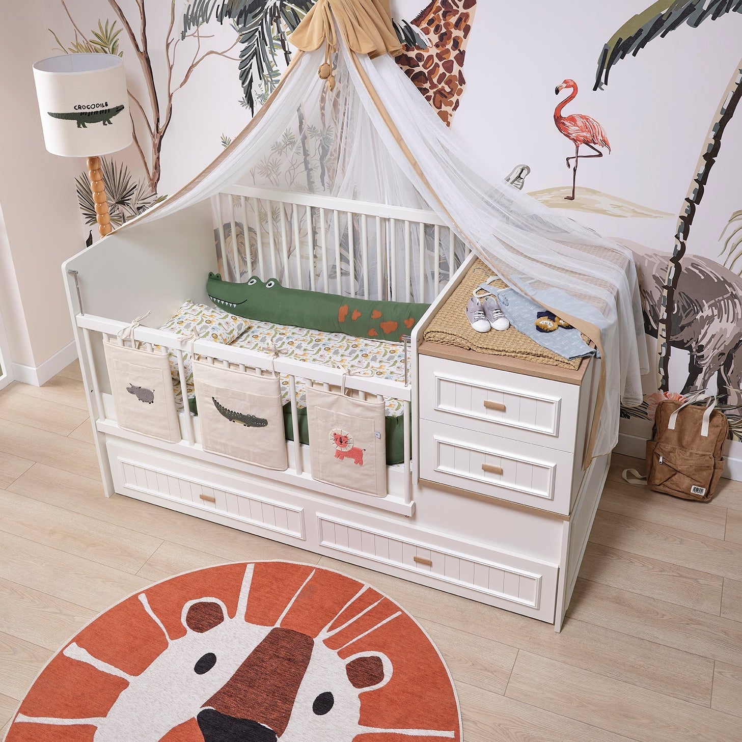 Чекмедже за кошара Monte Baby е перфектното допълнение към детското легло, осигуряващо практично и компактно място за съхранение. Това чекмедже за кошара е създадено с мисъл за родителите, които търсят удобство, стил и ефективно използване на пространството. Благодарение на вградената система за издръпване, чекмедже за кошара се използва лесно и осигурява допълнително място за дрехи, спално бельо и аксесоари. Изработено е от висококачествени материали, гарантиращи безопасност и дълготрайна употреба. Подходящо е за легло-сандвич Monte Baby и други модели със същите размери.