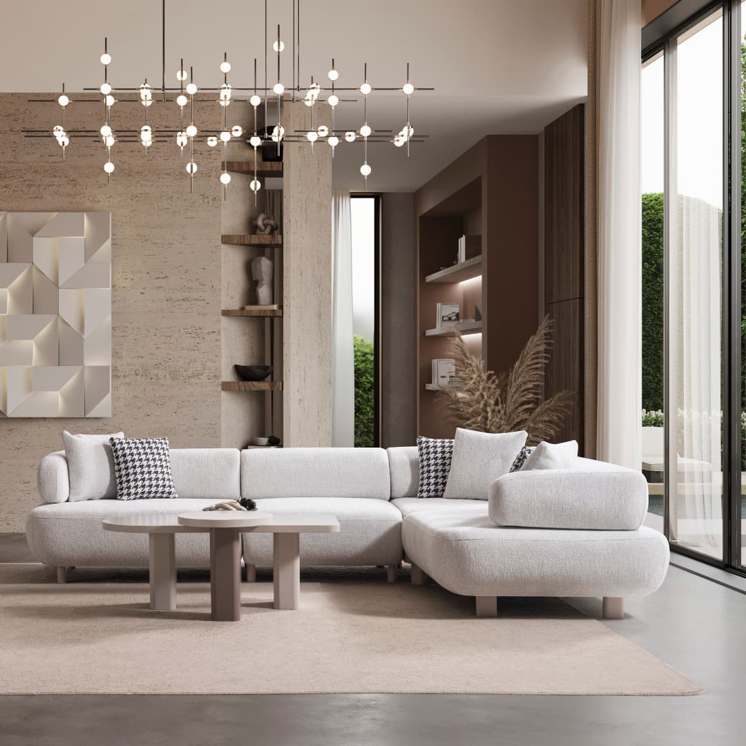 Модулен диван Florence е израз на съвременен комфорт, функционалност и елегантен минимализъм. Създаден за динамичния дом, той предлага богата модулна система – ляв/десен модул с подлакътник, среден (70 и 90 см), ъглов и релакс модул, които се комбинират според нуждите ви. Благодарение на подвижните облегалки и подлакътници на този модулен диван, както и високите крачета, моделът гарантира не само комфорт, но и лесна поддръжка.