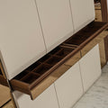 Гардероб Monza съчетава чист, съвременен дизайн и щедро вътрешно пространство за подредени дрехи и аксесоари. Равните фасади и плавните ръбове допринасят за елегантен силует, който се комбинира лесно с различни интериорни стилове. Подходящ за ежедневна употреба – с удобно разпределение за закачалки, сгънати дрехи и кутии за съхранение, за да поддържате спалнята организирана и спокойна.
