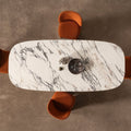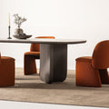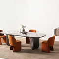 Трапезна маса Metropol е елегантен акцент за всяка модерна трапезария. Със своя впечатляващ овален плот от висококачествен материал с мраморен ефект и стабилна основа в изчистен дизайн, тя съчетава стил и функционалност. Масата предлага достатъчно пространство, за да събере цялото семейство и гости, превръщайки всяко хранене в специално изживяване. Подходяща е както за ежедневна употреба, така и за официални поводи, като внася усещане за изисканост и уют.