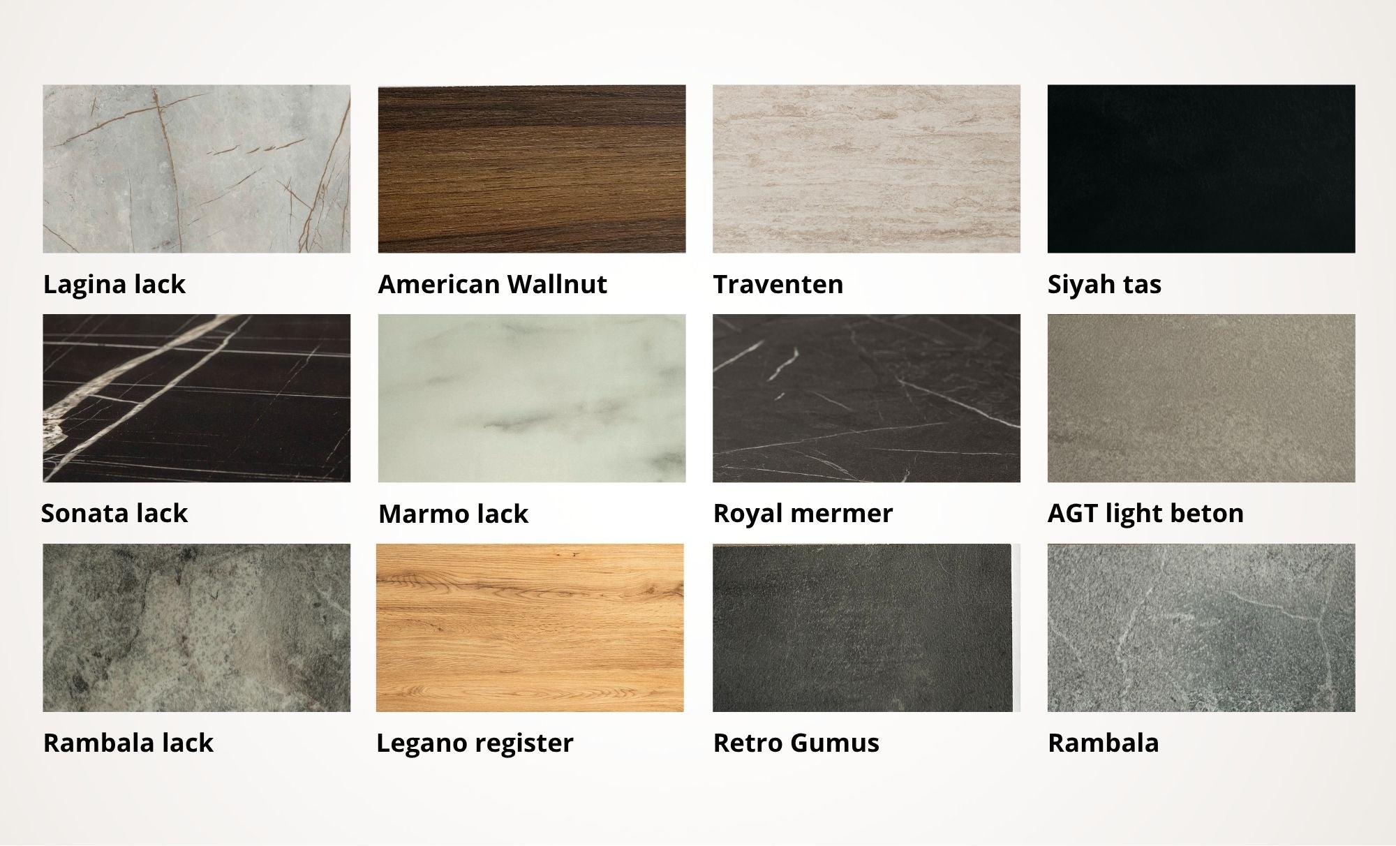 - Плот: Retro Gumus HPL – Текстурирана повърхност, вдъхновена от индустриалния стил, придаваща модерен и елегантен вид.