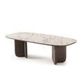 Трапезна маса Metropol е създадена да бъде силен, но елегантен акцент в модерната трапезария. Големият овален плот с мраморна визия внася усещане за лукс и прави масата естествено място за събиране - както в ежедневието, така и при по-официални поводи. Меките заоблени линии изглеждат по-деликатно от класическите правоъгълни маси и омекотяват интериора, особено в отворени дневни пространства.