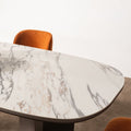 - Овален плот с мраморна визия - меки линии и луксозно излъчване в трапезарията