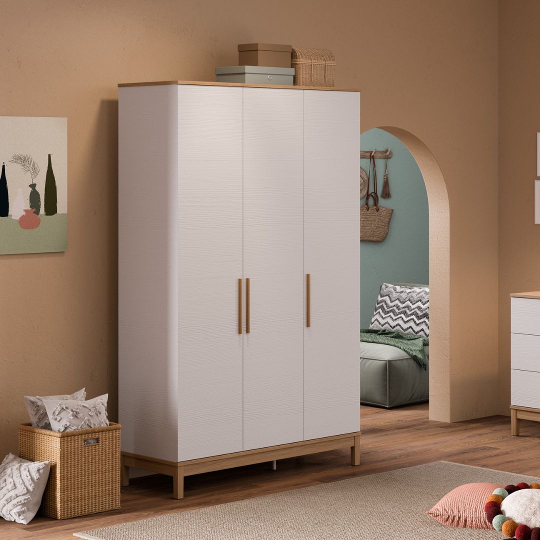 Трикрилен гардероб Etto представя елегантно и функционално решение за съхранение на вашите дрехи и аксесоари. Изработен с внимание към детайла, този гардероб е солидно изграден и предлага изобилие от пространство за организиране на вашата гардеробна колекция.