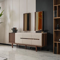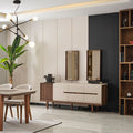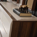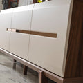 Бюфет Monza добавя подредена естетика и удобно място за сервизи, текстил и аксесоари. Изчистените фасади и плавните ръбове стоят леко в интериора и се комбинират лесно с трапезна маса и витрини от същата серия. Горният плот е подходящ за декорации или сервиране при гости, а компактната дълбочина улеснява позиционирането в трапезария или дневна.