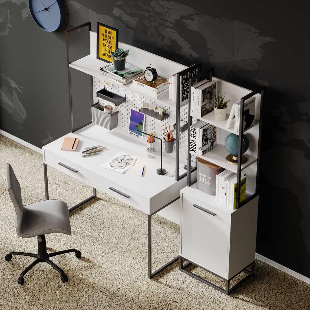 Детско бюро с надстройка Legend Moon разполага с 2 чекмеджета.Надстройката се състои от различни метални органайзери и магнитна дъска.Има и хоризонтален рафт за книги и други пособия.USB-порт за допълнително улеснение.