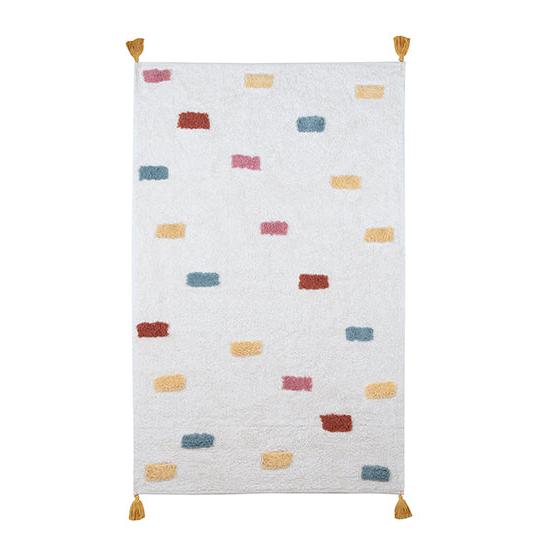 - Дизайнът на килима включва различни цветове и модели, които добавят интерес и живост в пространството