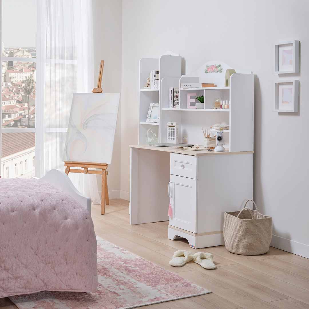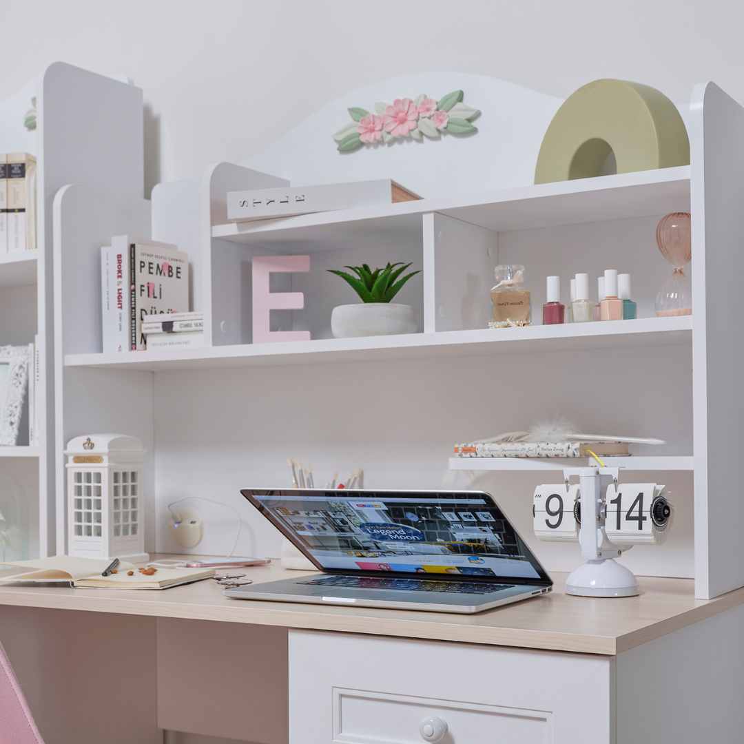 Надстройка за бюро Bianca е практично решение с място за съхранение и вграден USB порт. Тя не само предоставя организация на работното пространство, но и удобство с възможността за зареждане на устройства. Изработена от висококачествени материали, тази надстройка допълва функционалността на бюрото и е идеална за детски стаи или ученически кътове, предлагайки комбинация от практичност и съвременен дизайн.