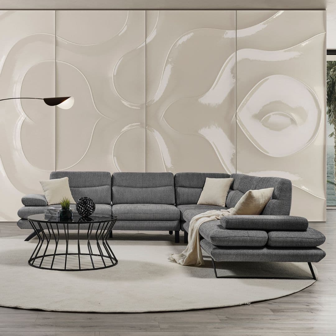 Модулен диван Polo съчетава стилна геометрия, висока функционалност и модерен комфорт. Създаден с внимание към детайла, този диван предлага възможност за персонализиране чрез разнообразни модули: триместни елементи с ляв или десен подлакътник, ъглов, среден и стандартни едноместни модули. Благодарение на дълбоката седалка от 65 см и височината от 48 см, моделът осигурява изключителен релакс. С елегантна форма, подчертана от двуредови облегалки и изразен профил, Polo е отличен избор за просторни дневни и модерни интериори.