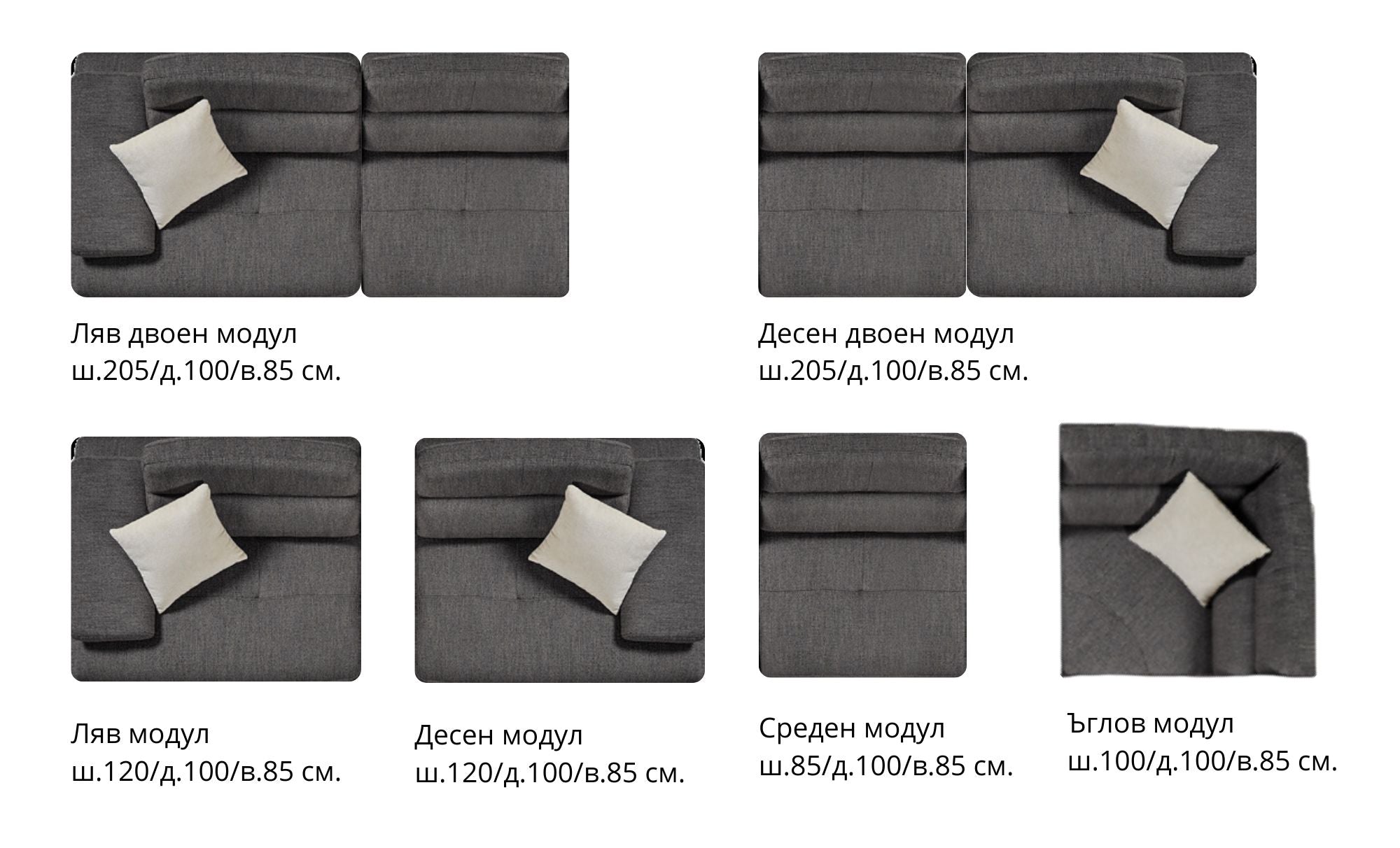 - Ъглов модул: ш.100/д.100/в.85 см.