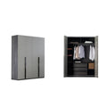 Модерен гардероб с изчистени линии, който осигурява обилно пространство за съхранение и стилно допълва интериора на всяка спалня. С широчина 182 см, дълбочина 58 см и височина 221 см, моделът предлага практично вътрешно разпределение с рафтове, лостове за дрехи и чекмеджета. Идеален избор за просторни спални или дрешници.