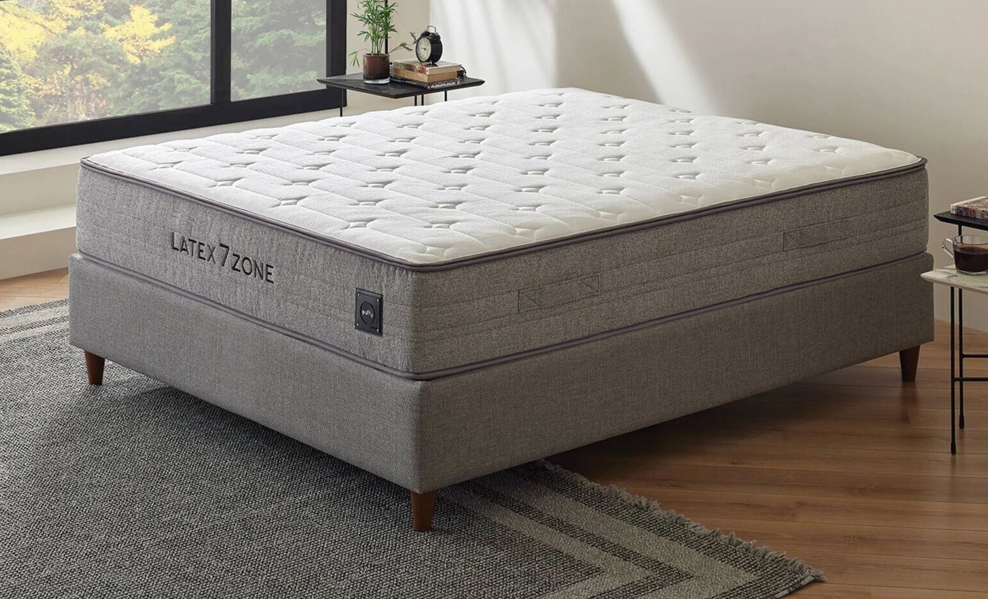 Puffy Latex 7 Zone е висококачествен спален комплект, съчетаващ 100% естествен латекс, 7 зони на комфорт и стилна визия. Сетът включва ергономичен матрак, стабилна основа и тапицирана табла в елегантен пясъчно-сив (кум гри) цвят – подходящ за модерна и балансирана спалня.