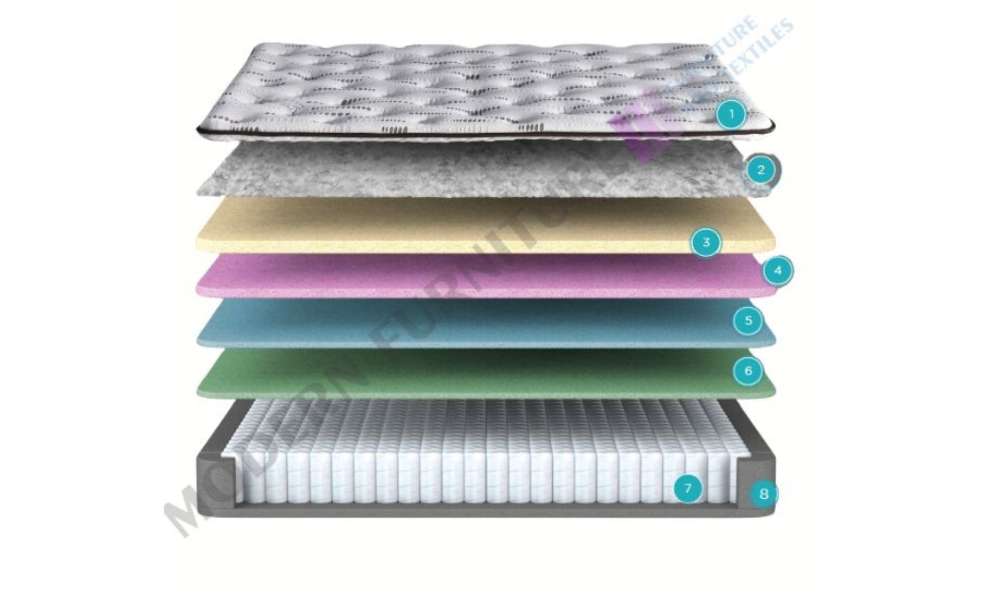 - Комфортен пласт: Този пласт с висока плътност поддържа гръбначния стълб и увеличава комфорта. Увеличената височина на пласта допълнително подобрява усещането за мекота, като същевременно осигурява устойчивост.