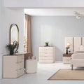 Скрин Bagdat е функционално допълнение към вашата спалня, осигуряващо удобство и стил. Разполага с пет чекмеджета, които предлагат практично място за съхранение на дрехи и аксесоари. Изработен е от МДФс механизми за плавно затваряне, осигуряващи тиха и безпроблемна употреба.