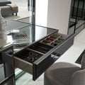 Тоалетка Oylat е елегантно и практично допълнение към спален комплект Oylat. Моделът разполага с три чекмеджета и голямо огледало с алуминиева рамка, което осигурява удобство и функционалност. Изработена е от МДФ с механизми за плавно затваряне, които добавят комфорт при употреба.