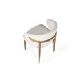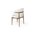 Трапезният стол MF07 съчетава изчистен силует, мека тапицерия и стабилна дървена конструкция. Моделът е с модерна извита облегалка, която осигурява удобна опора за гърба, докато тапицираната седалка предлага комфорт при ежедневна употреба.