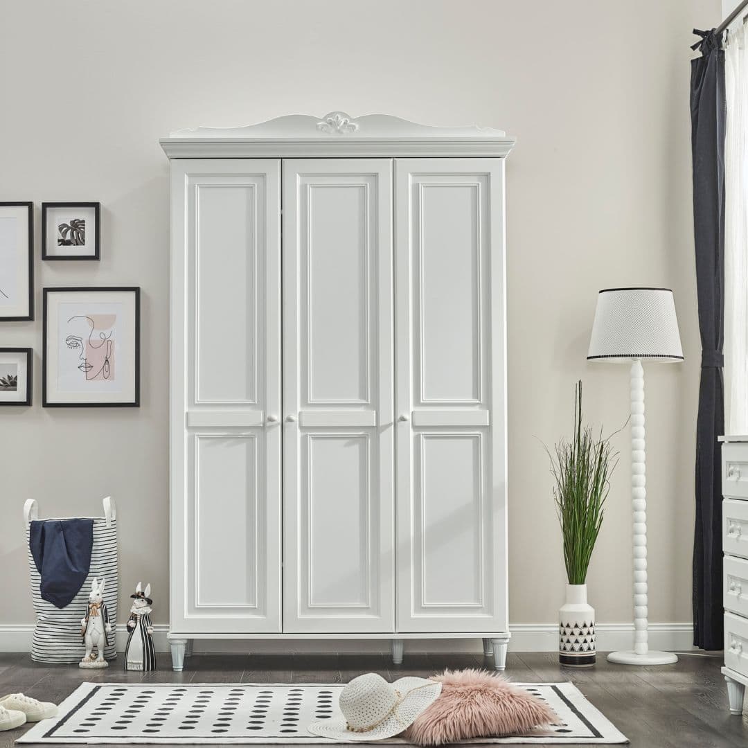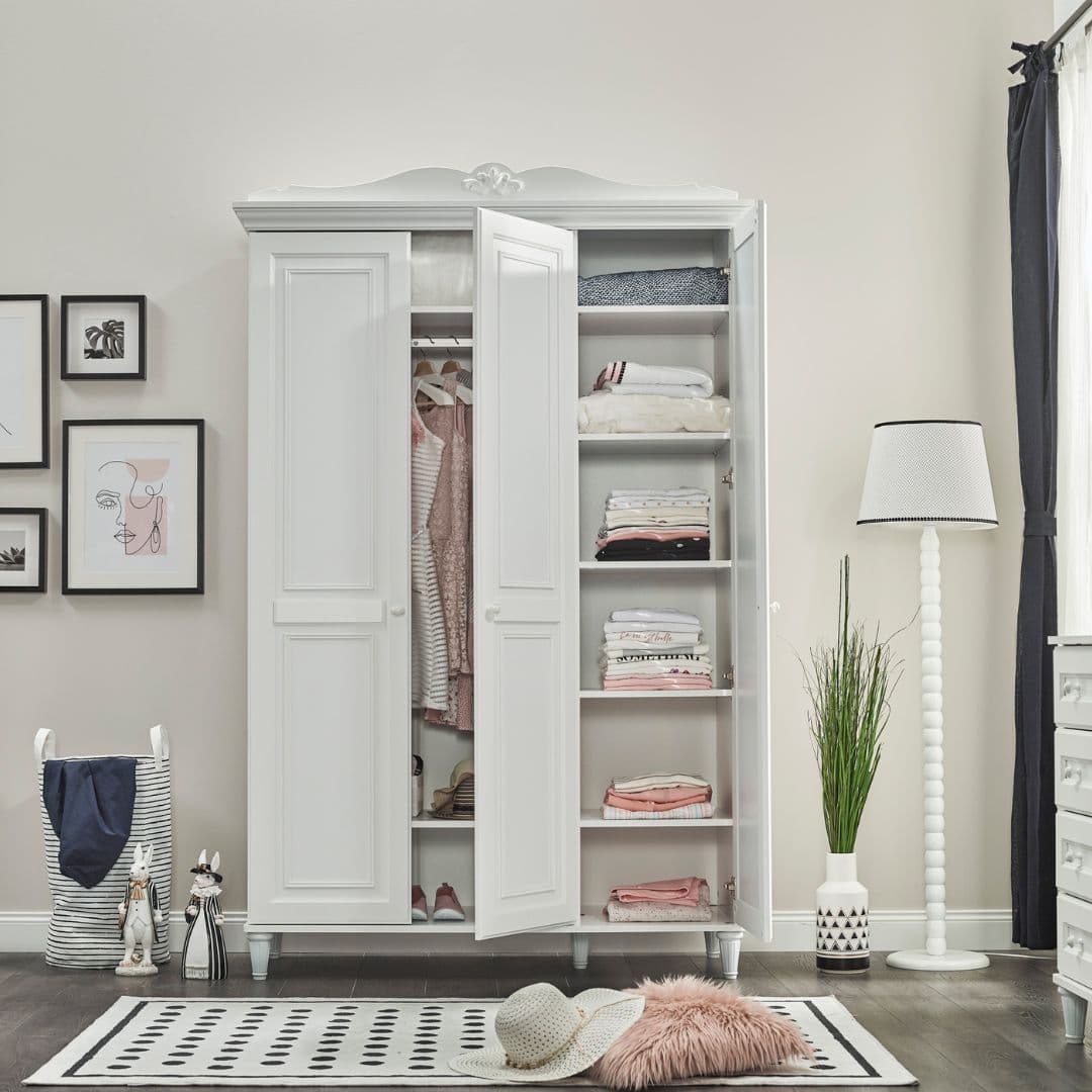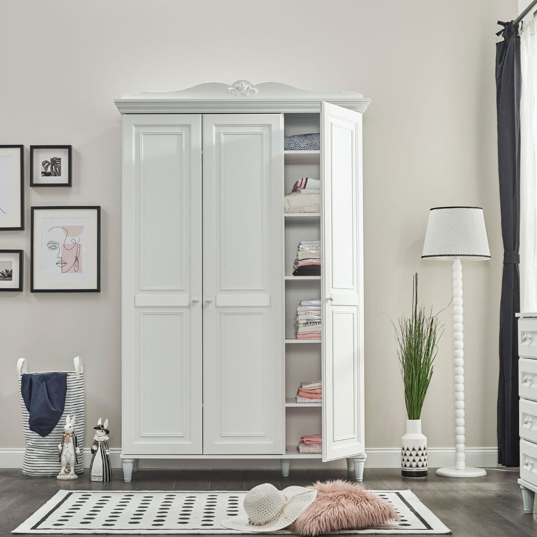Изработен от висококачествени материали, гардеробът е част от колекцията Lora – създадена за стилни интериори и малки принцеси.