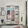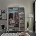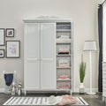 Със своя изчистен бял дизайн, фрезовани врати и стабилна конструкция, той осигурява удобно и красиво решение за съхранение на дрехи и аксесоари.