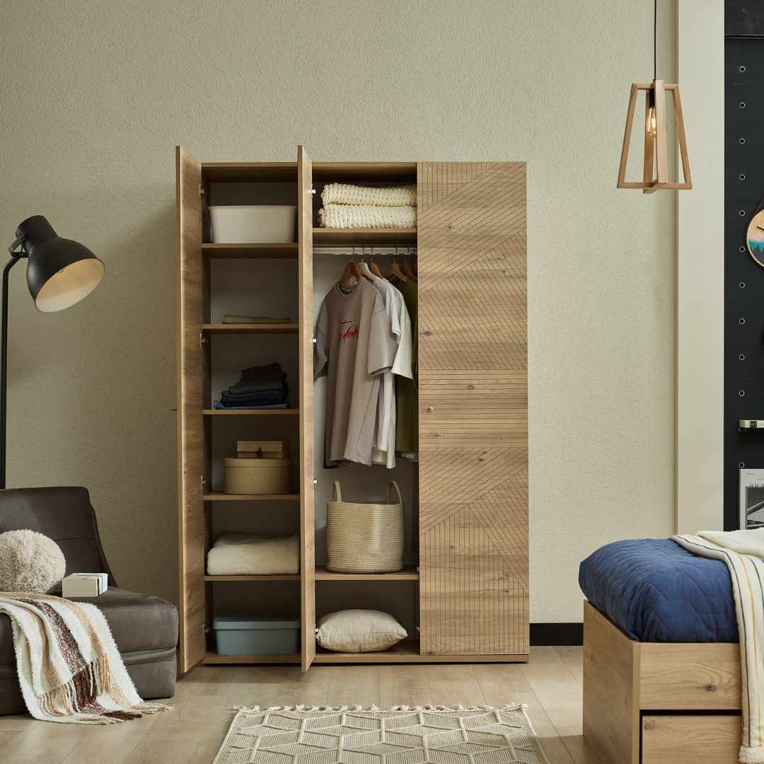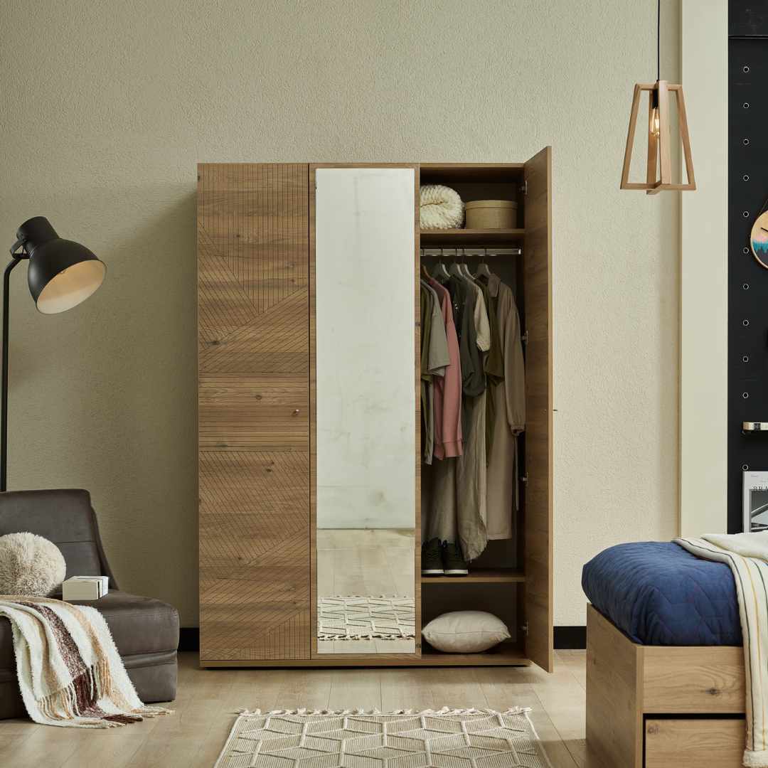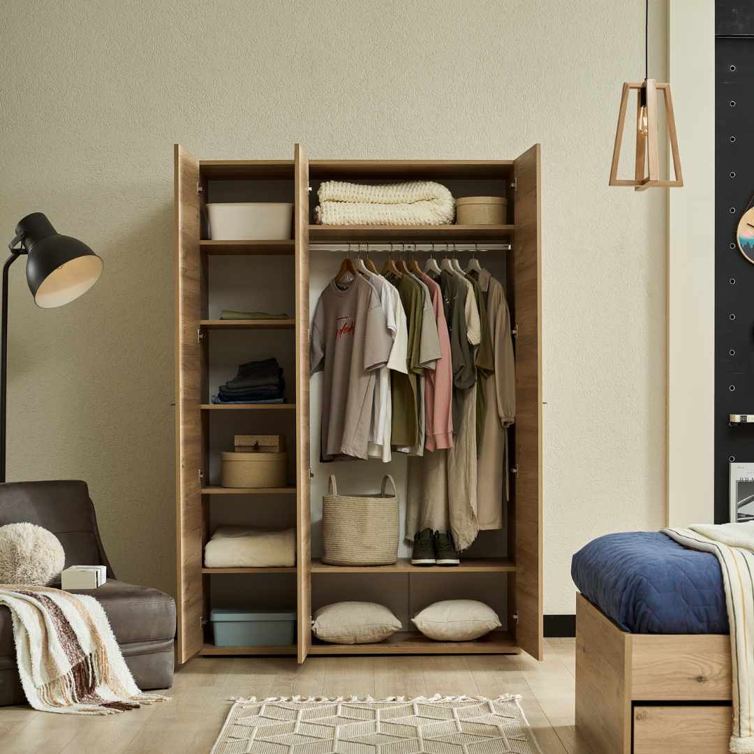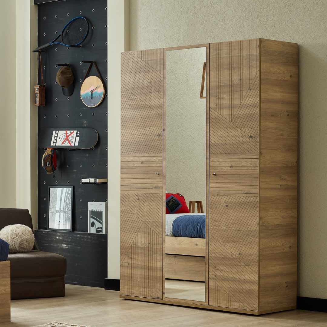 Трикрилен гардероб Origami представя елегантно и функционално решение за съхранение на вашите дрехи и аксесоари. Изработен с внимание към детайла, този гардероб е солидно изграден и предлага изобилие от пространство за организиране на вашата гардеробна колекция.