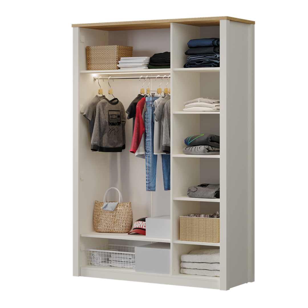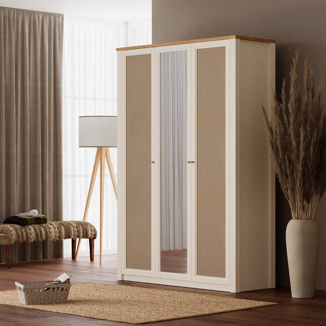 Трикрилен гардеробът с огледало Corso предлага елегантно решение за съхранение на вашите дрехи и аксесоари. Със своите три врати и функционално разпределение вътре, този гардероб предоставя достатъчно място за организиране на всички ваши неща.