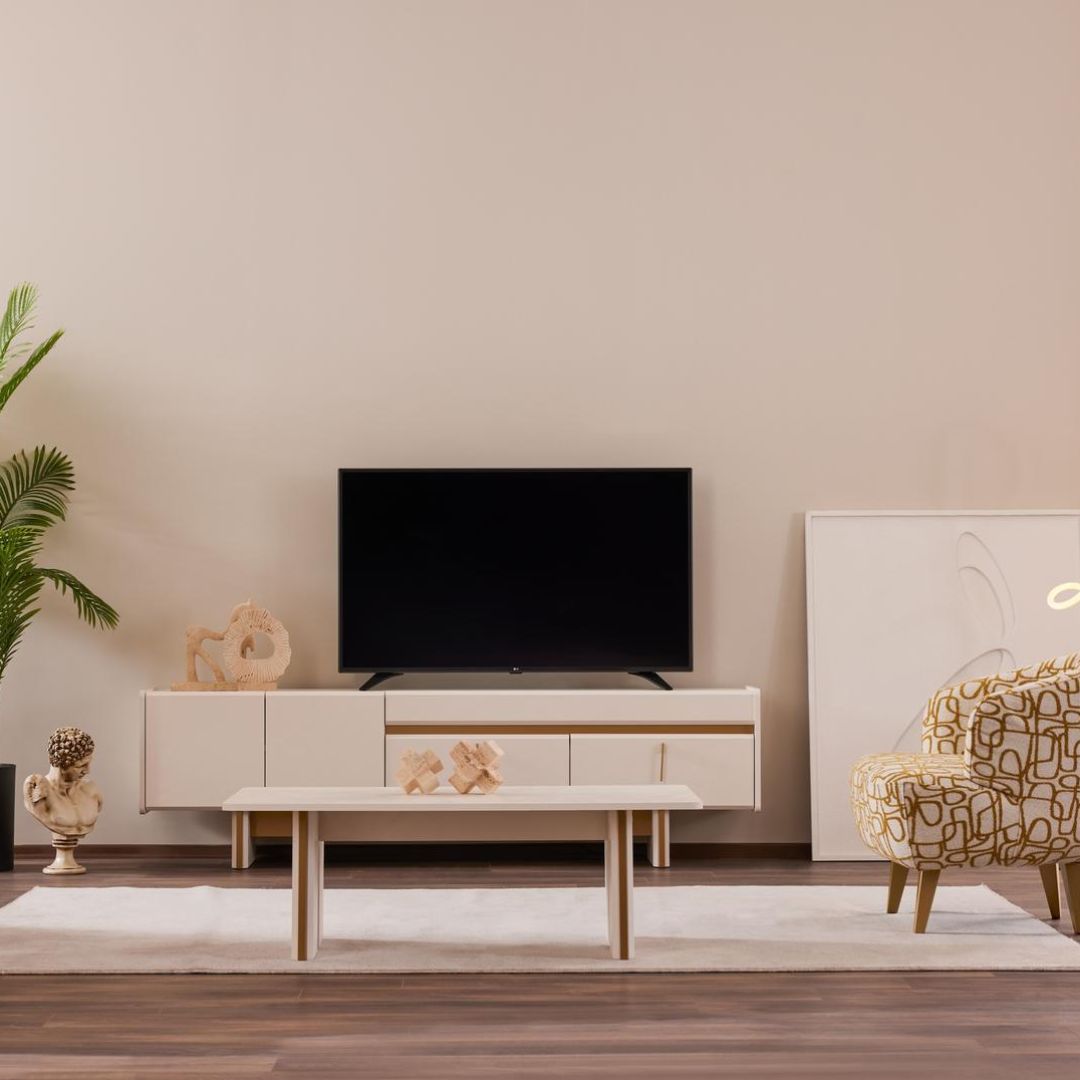 ТВ шкафът Loren е създаден с внимание към детайла, комбинирайки елегантен дизайн с практичност. Неговите изчистени форми и светъл цвят допринасят за съвременна и подредена визия в дневната. Благодарение на компактната си конструкция и функционално разпределение, той предлага достатъчно място за съхранение на техника и аксесоари.