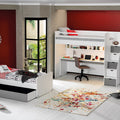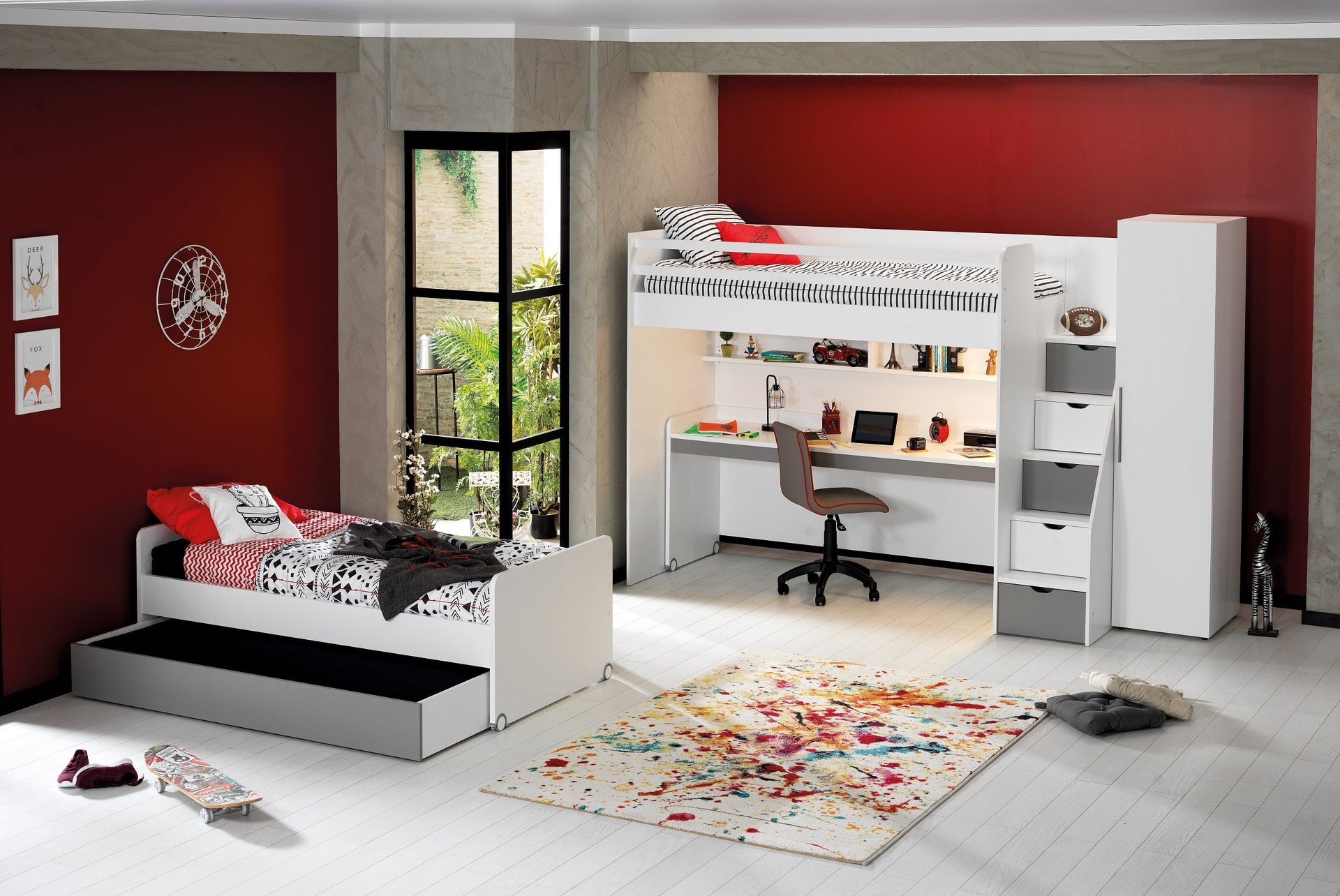 Ученическо бюро Neo Grey може да бъде част от двуетажно легло или самостоятелен продукт. То е функционална мебел, която има и USB порт за зарждане на мобилно устройство.Ученическото голямо бюро Neo Grey е практично и функционално решение за детската стая.